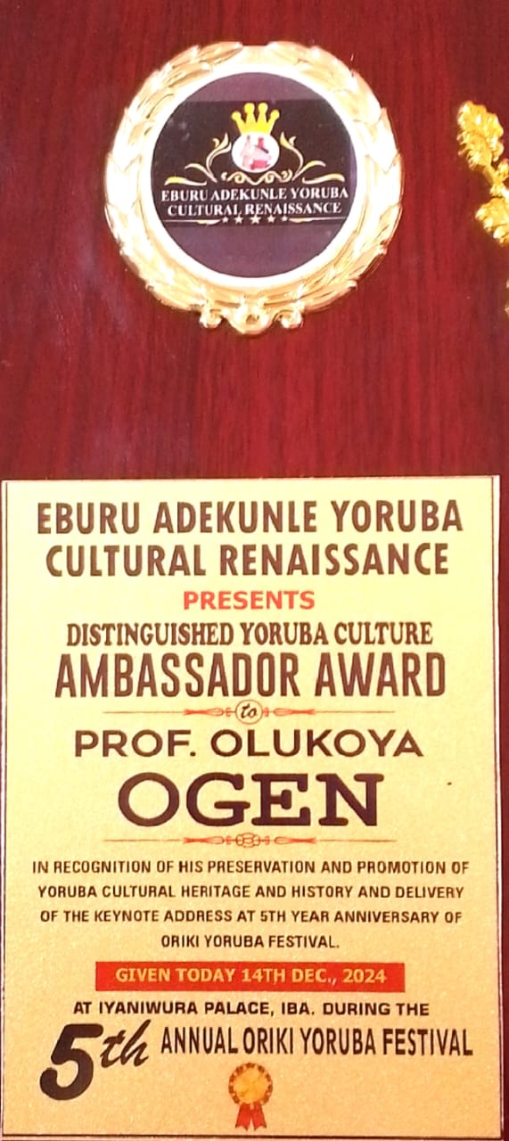 Photographs from the UNESCO-IFCD-UNIOSUN Project's collaboration with the Annual Oriki (Praise Poetry) Yoruba Festival on the 14th of December 2024. The event featured participants from several cultural groups across Yorubaland, over 40 traditional rulers and chiefs, and foreign visitors. Prof. Olukoya OGEN delivered the keynote and was decorated as "Distinguished Yoruba Cultural Ambassador." The event was streamed live with audiences in the US, Canada and the Caribbean.